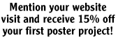both Mac and PC files.To protect your prints, lamination choices include hot or cold, glossy and matte finishes in a variety of thicknesses. And prints can be mounted onto your choice of substrates - foamcore, gatorfoam, sintra, plexiglass and more. Finishing touches include velcro, grommets, easel backs and magnetic strips to make your prints all the more user friendly. For more large-format information or to send files (under 10 MB) posters@fidelitygraphics.com. For larger files, call for FTP information.  |